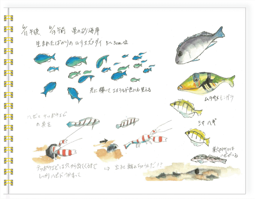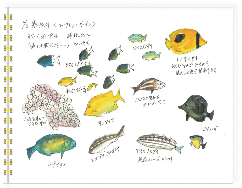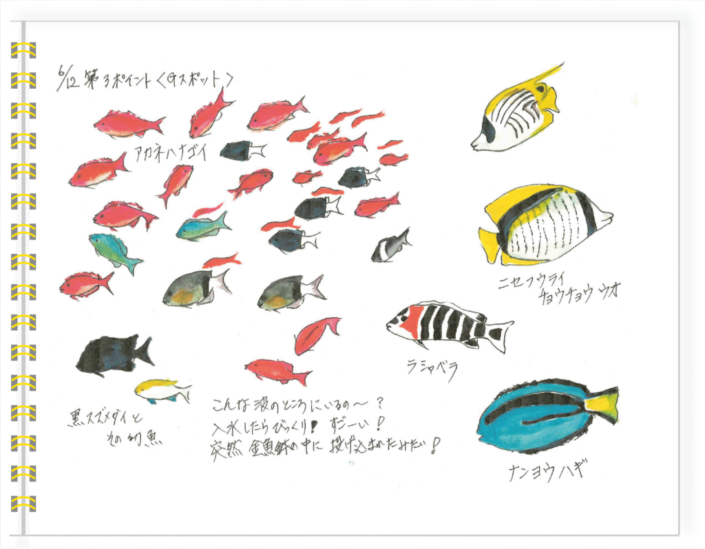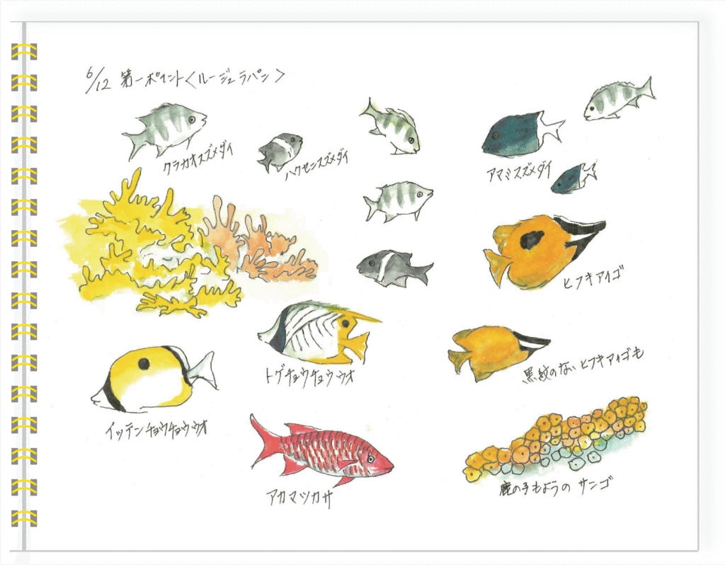 シュノーケリングを始められてからさまざまなツアーに参加されている橋本さんはツアー参加後、自宅へ帰るとすぐに楽しかった海の様子をスケッチして記録されています。